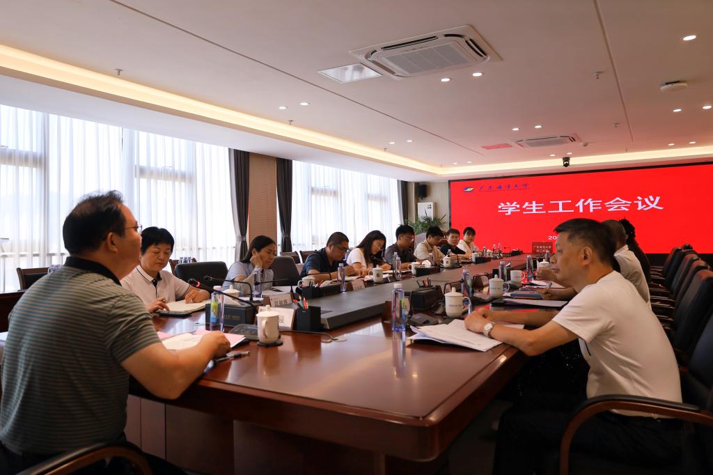 9月5日上午,校区在海纳楼712会议室召开新学期学生工作会议。校区党委委员、管委会副主任陈永强主持会议,学生事务部负责人、各学院学生工作负责人、全体辅导员及学生事务部全体人员参加了会议。